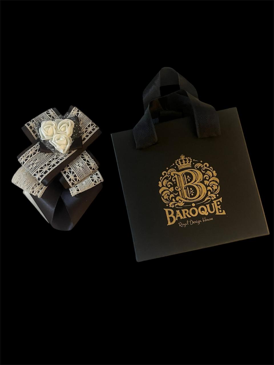Indulge in the perfect blend of texture and charm with this handmade bow brooch. The luxurious backdrop of rich chocolate satin is beautifully complemented by a delicate layer of soft ivory crochet, creating a look that is both cozy and chic. The Centrepiece is a charming Floral Trio accent, adding a final touch of natural grace. This piece offers a sophisticated, textural statement perfect for adding warmth and elegance to your jacket, scarf, or dress.